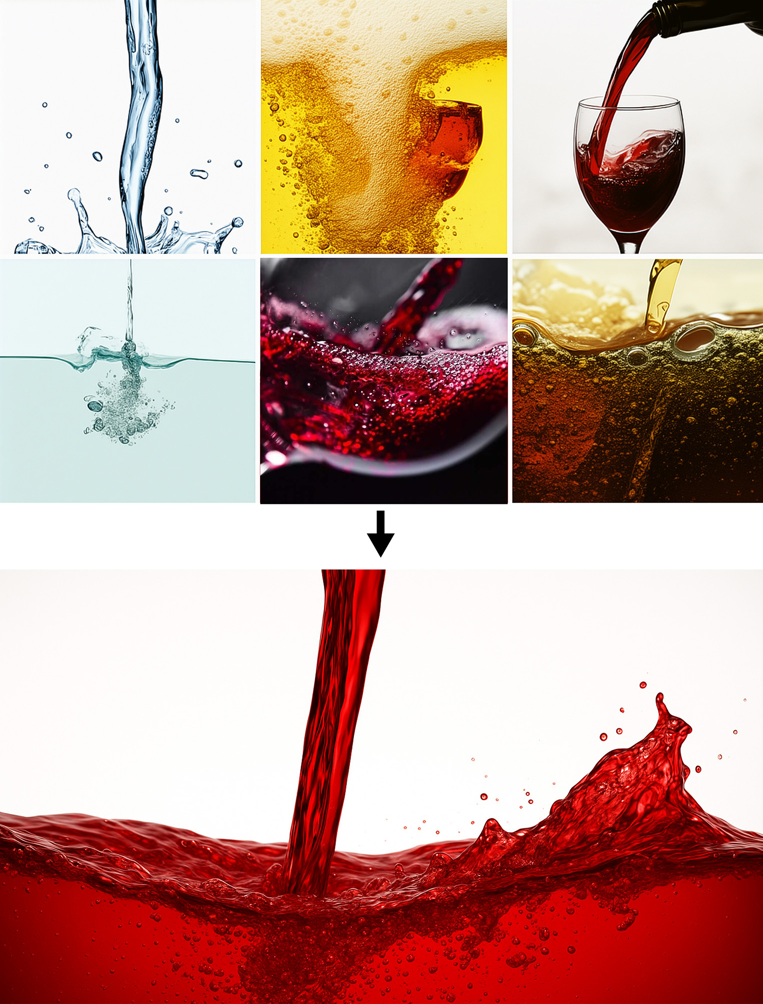 Mood-setting references – We sourced reference images to lock in the look and feel of the wine texture and motion.
